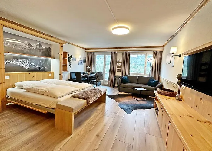 Lägenheten ligger i St. Moritz, ca 25 minuters promenad från centrum. Hide & Seek med ett stort utbud av mat och dryck ligger 350 meter bort. 45M2 Alpenschick Mit Ausblick - Pool - 2P. - E405 lägenhet är ett bra alternativ att bo på nära Reformierte Kirche Champfer.